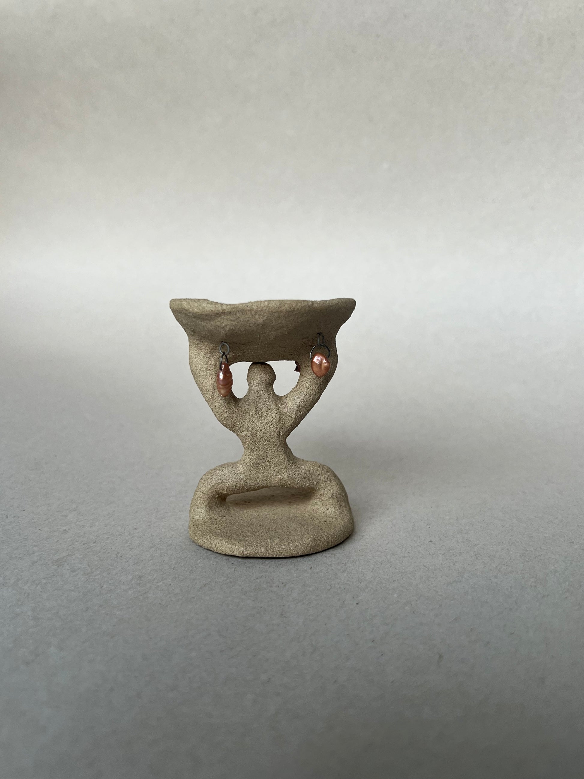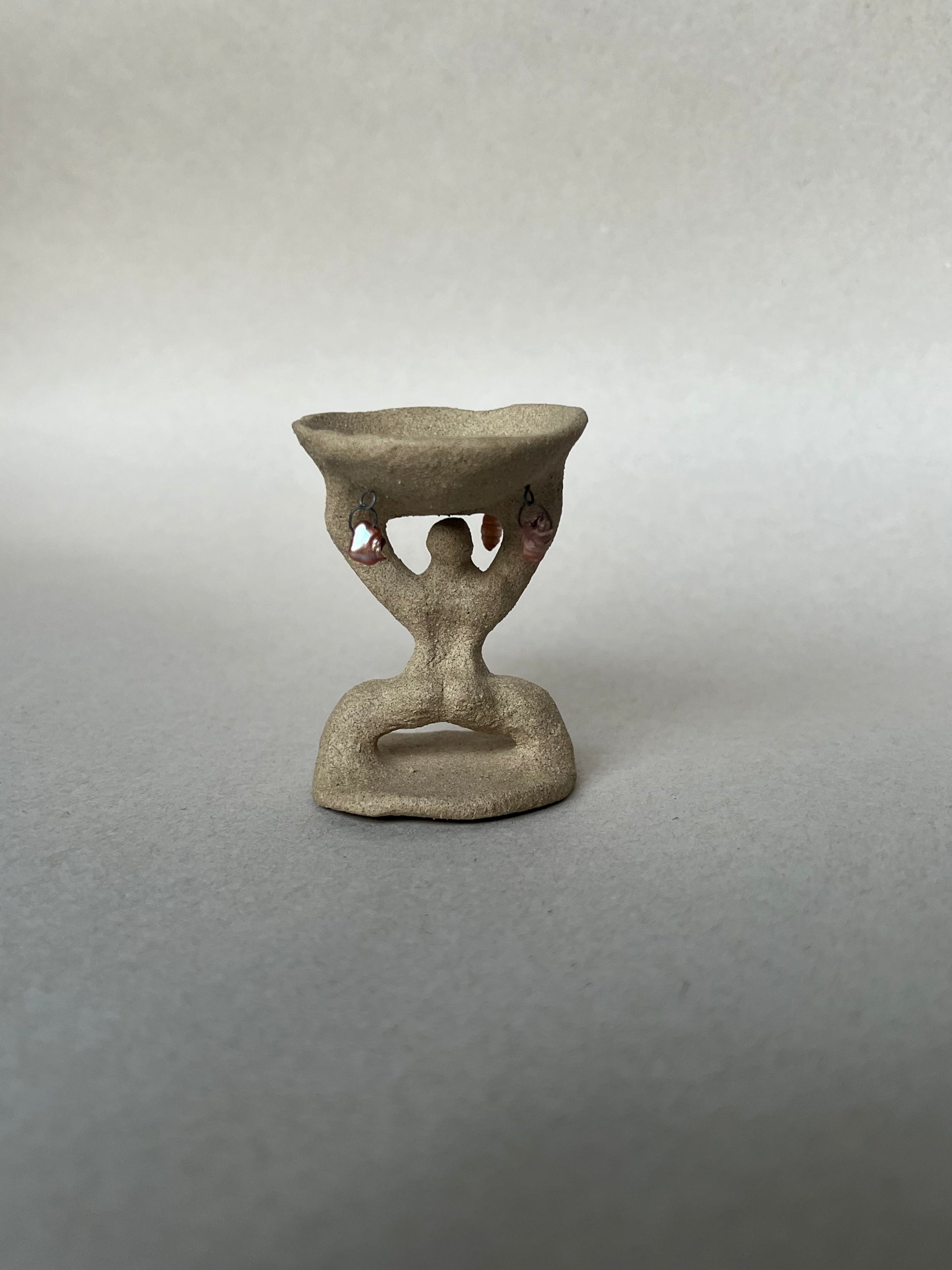 hand sculpted body dish with freshwater pearl details. unglazed speckled clay.