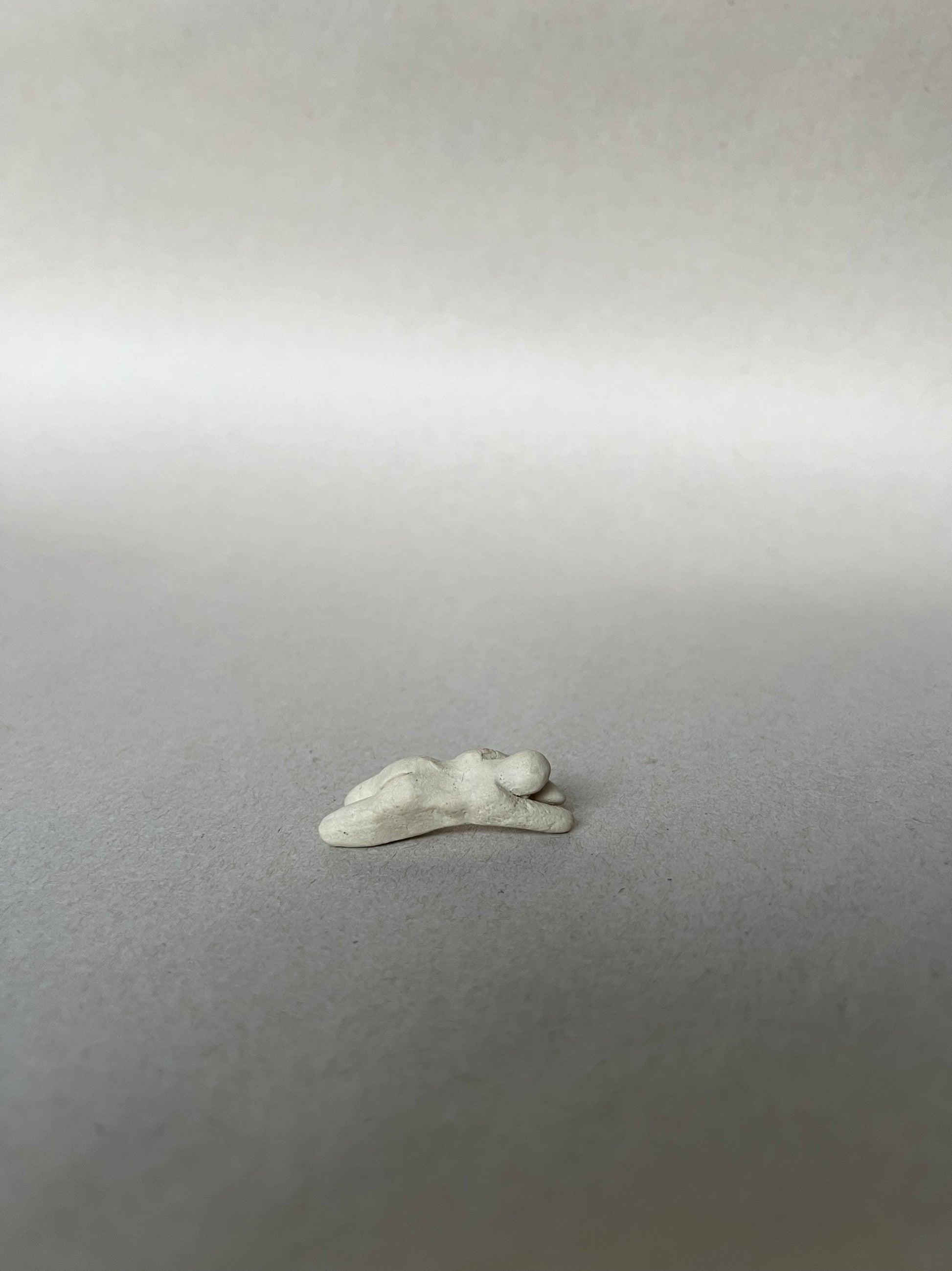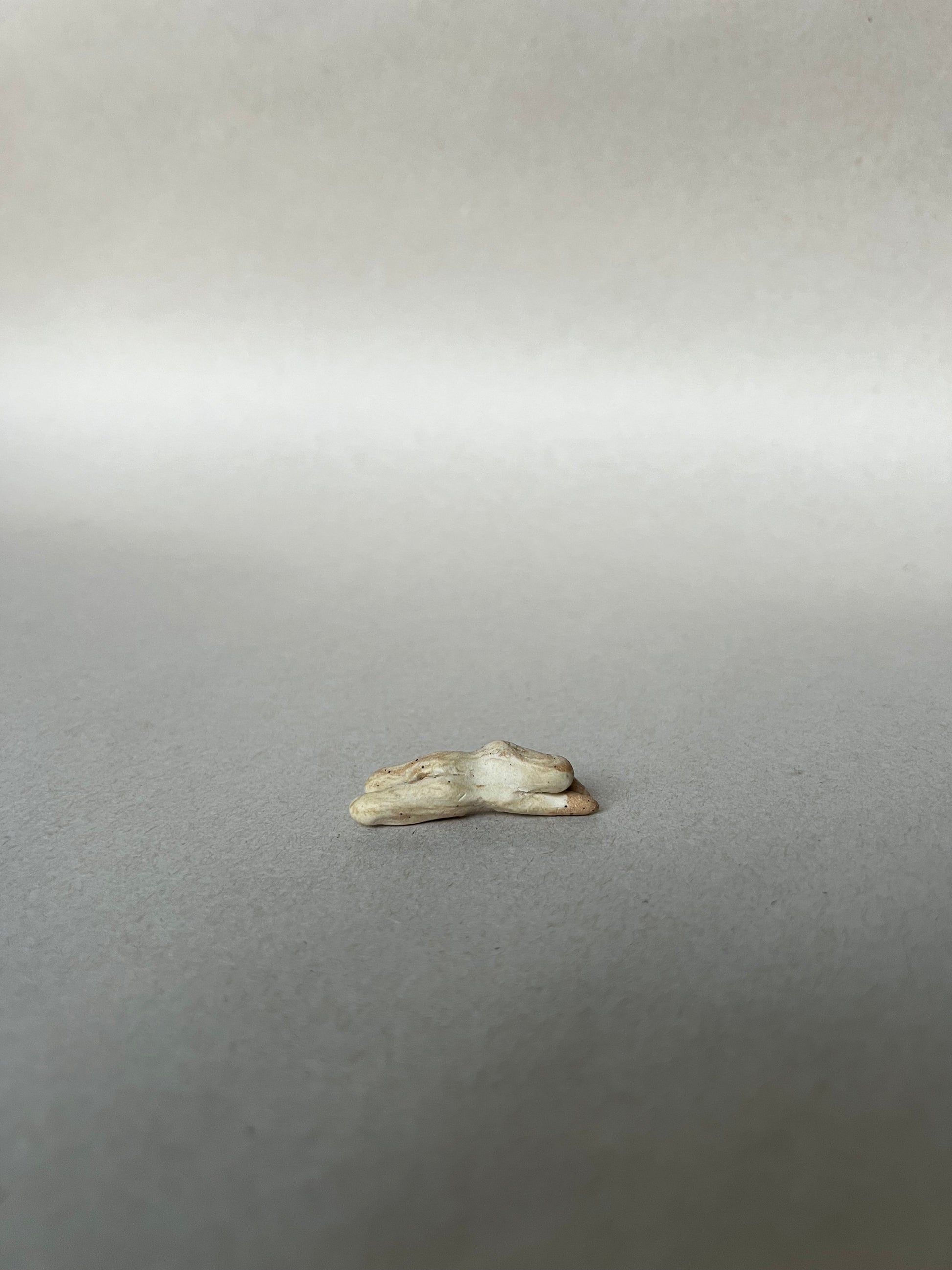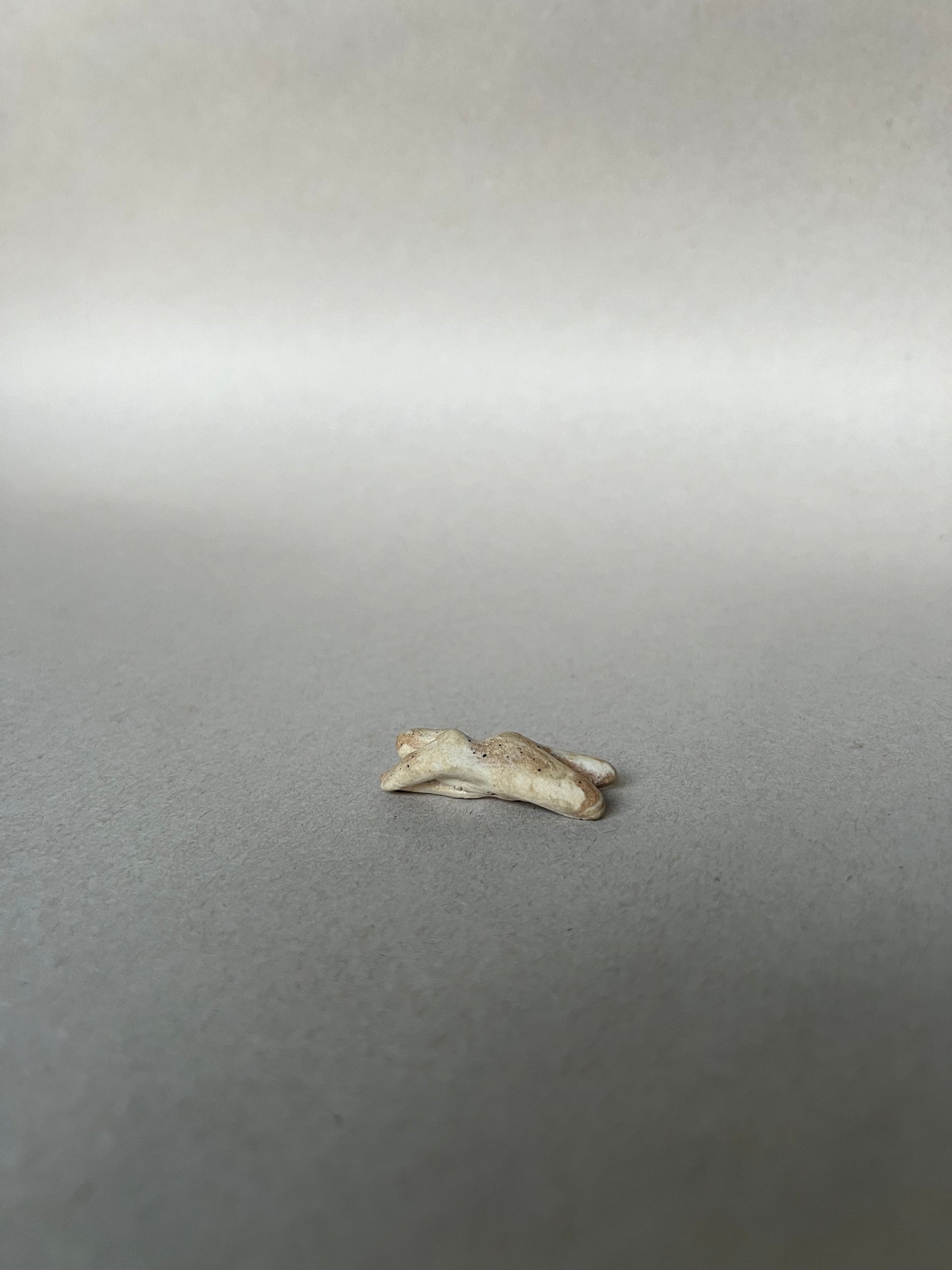 use this mini sculpture as a utensil rest or simply for display. unglazed clay.