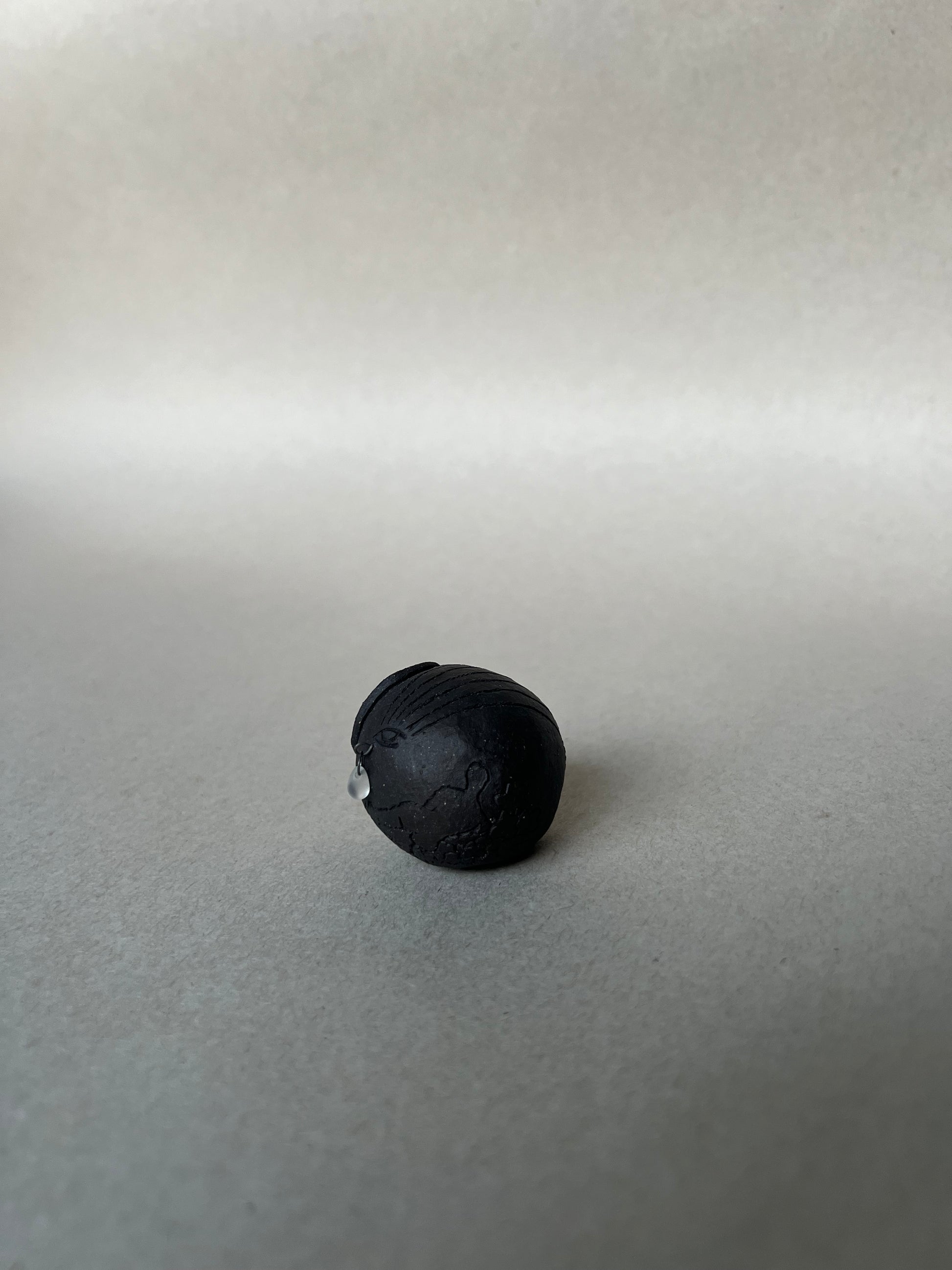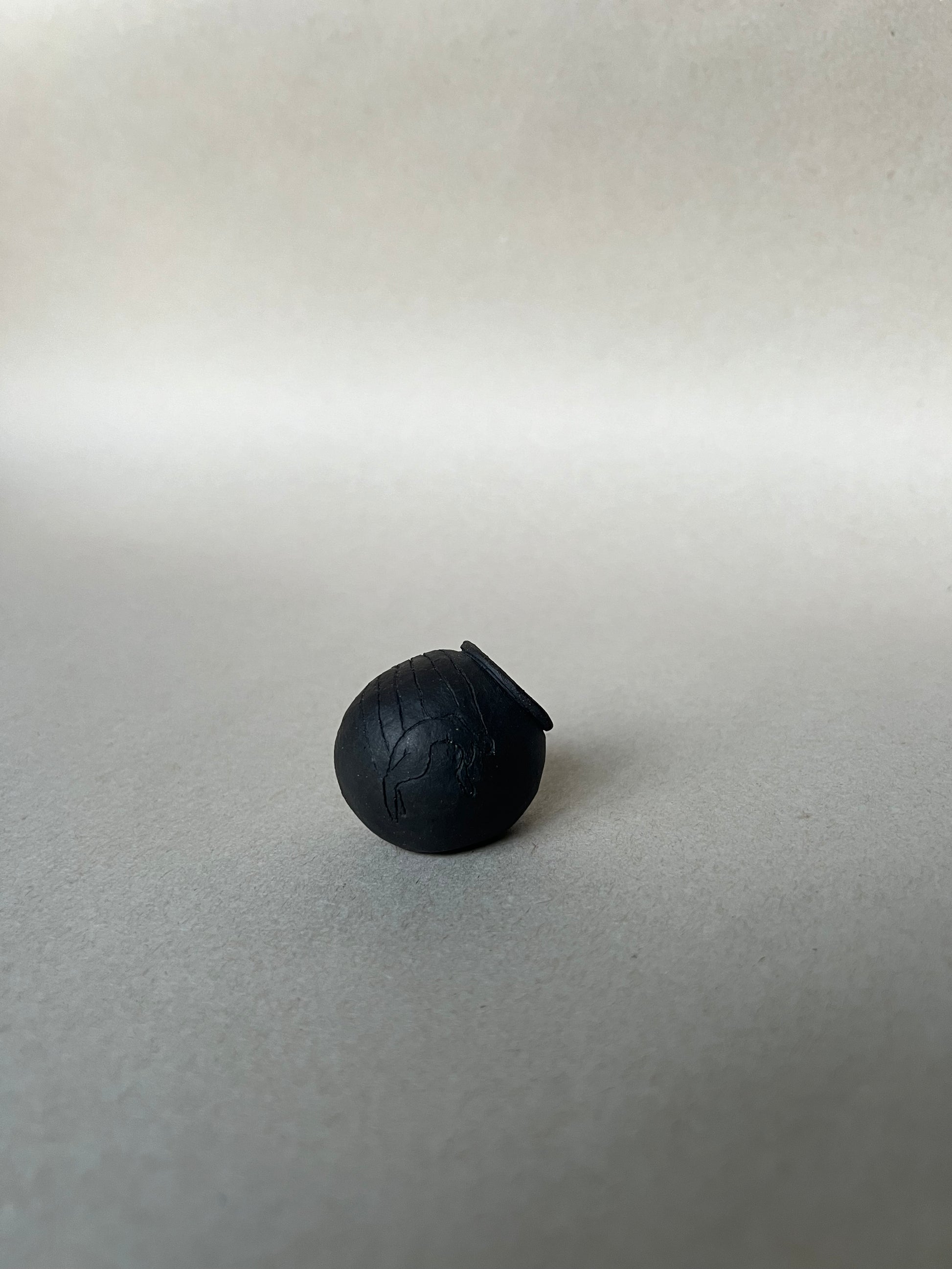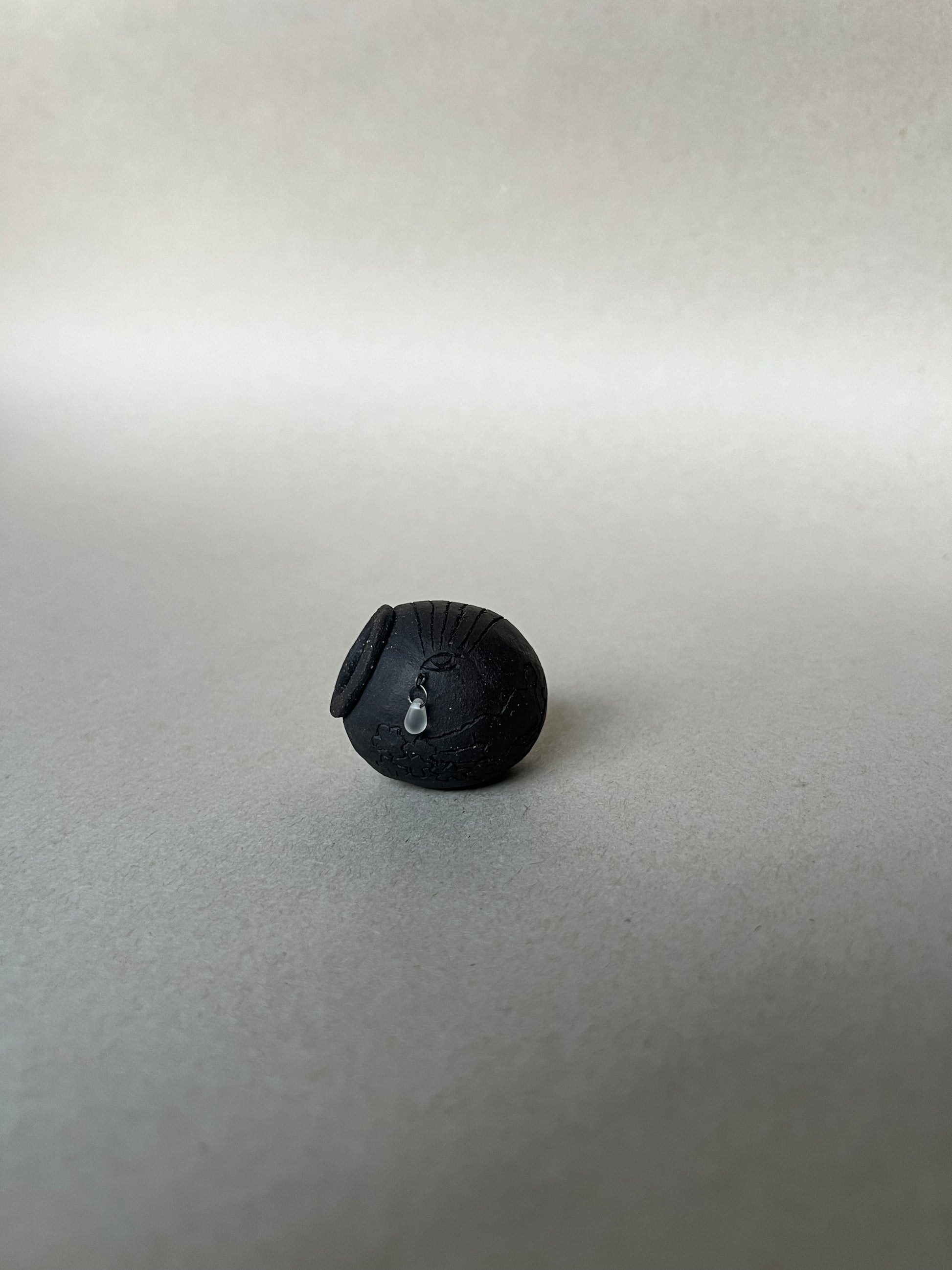 hand sculpted tilted vessel perfect for your unfinished smokeables. unglazed clay with etched vignette and teardrop crystal. can also be used as a miniature pot for plants. not food safe.